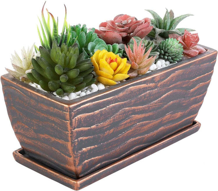 12 Inch Vintage Copper Ceramic Succulent Plant Pot With Removable Saucer Tray Ebay