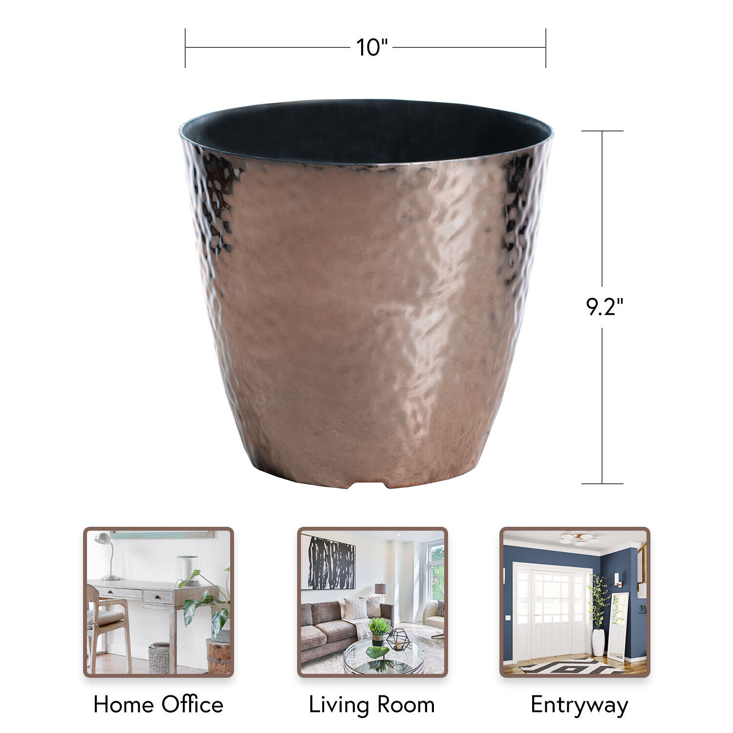 Copper Metallic Hammered Plastic Flower Pot Garden Planter 10 Inch Or 12 Inch Walmart Com